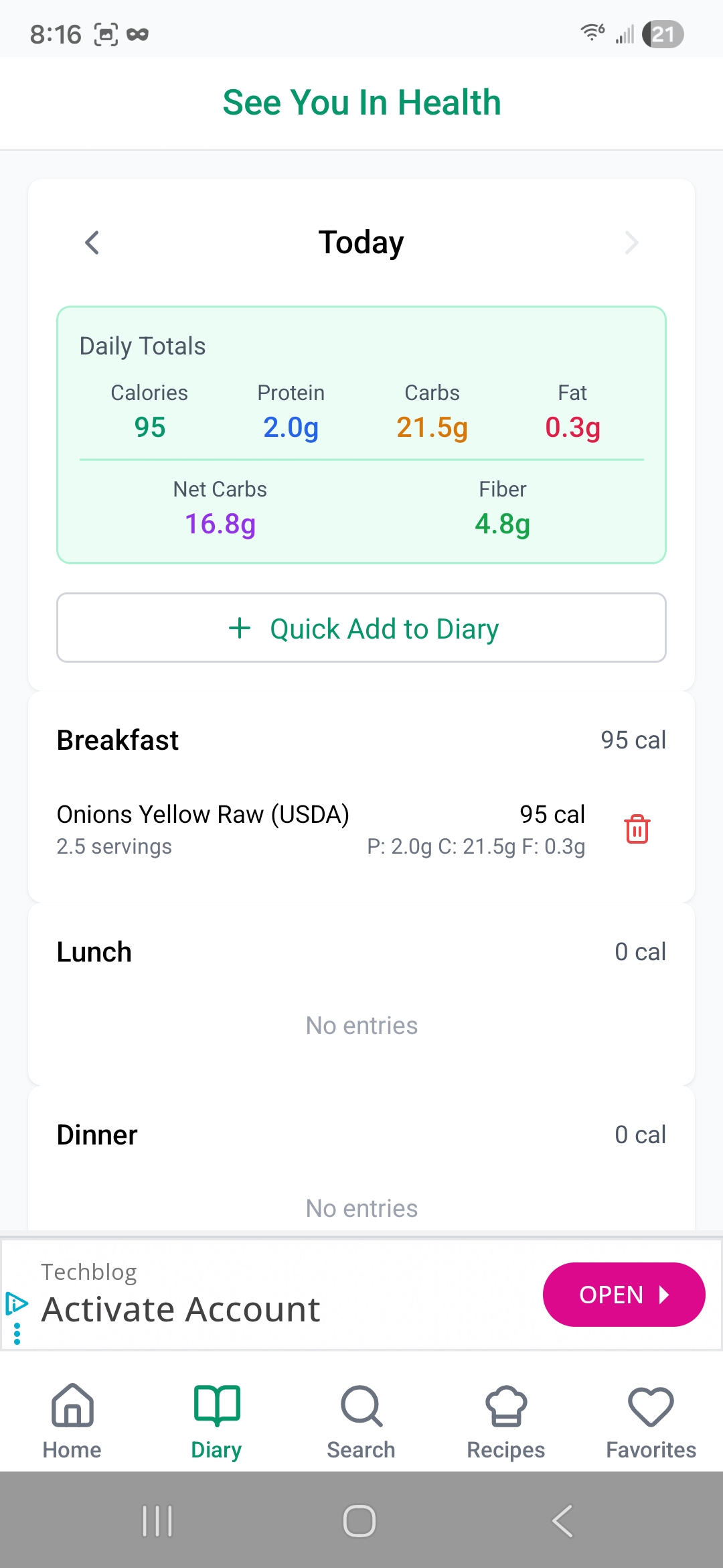 If you've ever tried to keep track of your proteins, carbs, and fats, you know it can feel like herding cats. See You in Health aims to make that chore a sight easier. Log your meals, tally up your macronutrients, and keep an eye on your daily totals—all without needing a degree in arithmetic. The app pulls its food data from the USDA and OpenFoodFacts databases, so you're getting the real numbers, not somebody's best guess. And when you don't feel like typing, just scan a barcode and let the app do the heavy lifting. No accounts, no complications—just you and your macros, getting along fine.